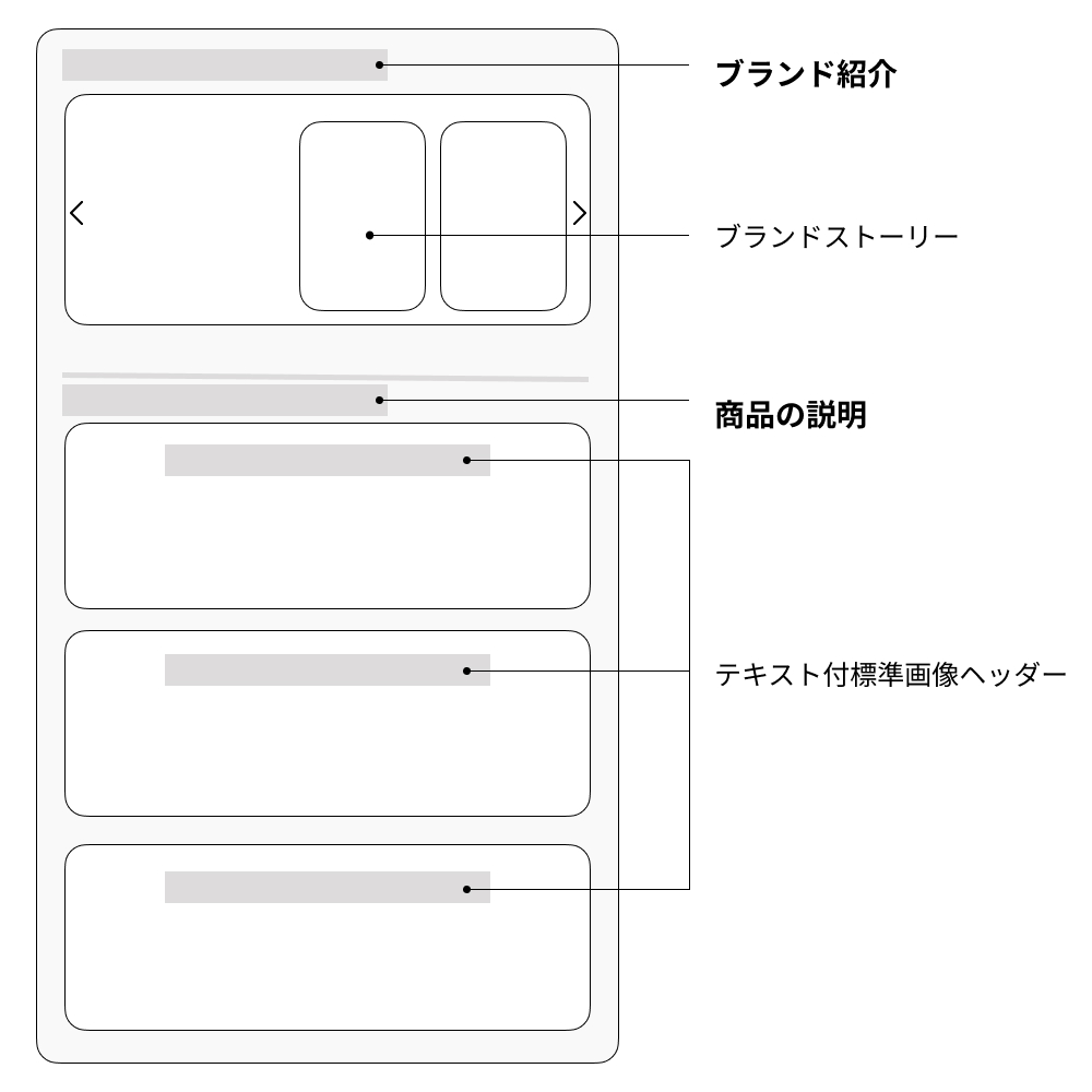 ・最初のモジュールでブランド紹介をし、ブランドのこだわりを多数紹介することで信頼性を高めている。