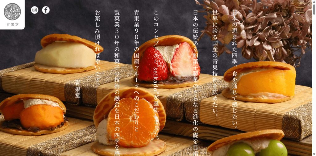 フルーツ大福を中心に、素材の美しさを大きな写真で表現。
