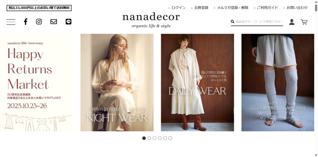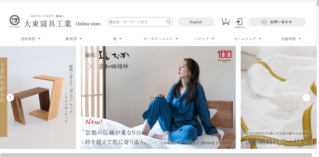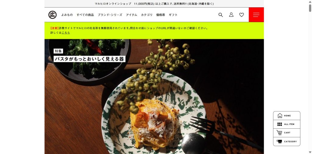 雑貨やインテリアを扱うサイトは、余白と写真のバランスが洗練された印象を与えます。