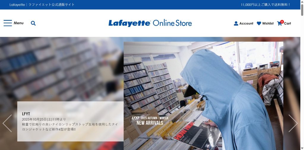 白を基調に青をアクセントにしたシンプルで洗練されたデザインで、ブランドの個性を際立たせています。