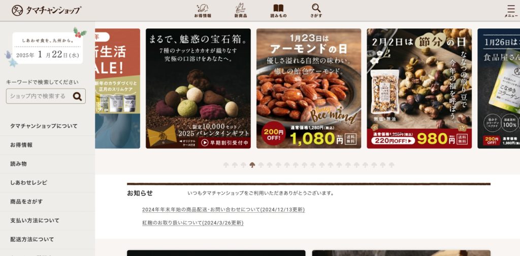 ・カテゴリのネーミングが「しあわせナッツ」など、親しみやすくオリジナリティーがあり、わかりやすい