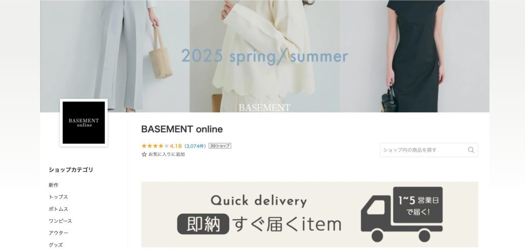 ショップ名:BASEMENT online