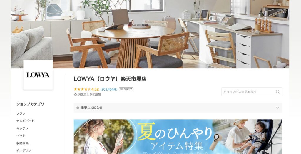 ショップ名:LOWYA(ロウヤ)