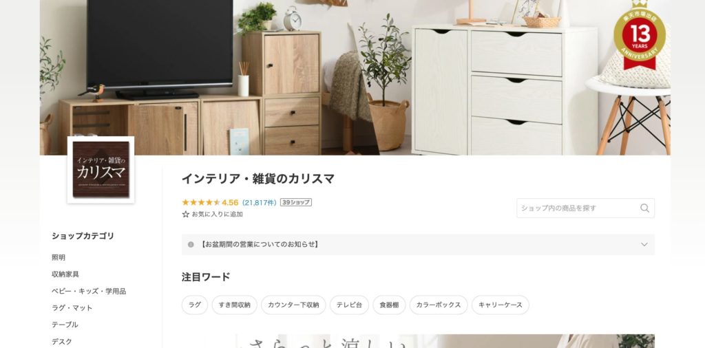 ショップ名:インテリア・雑貨のカリスマ